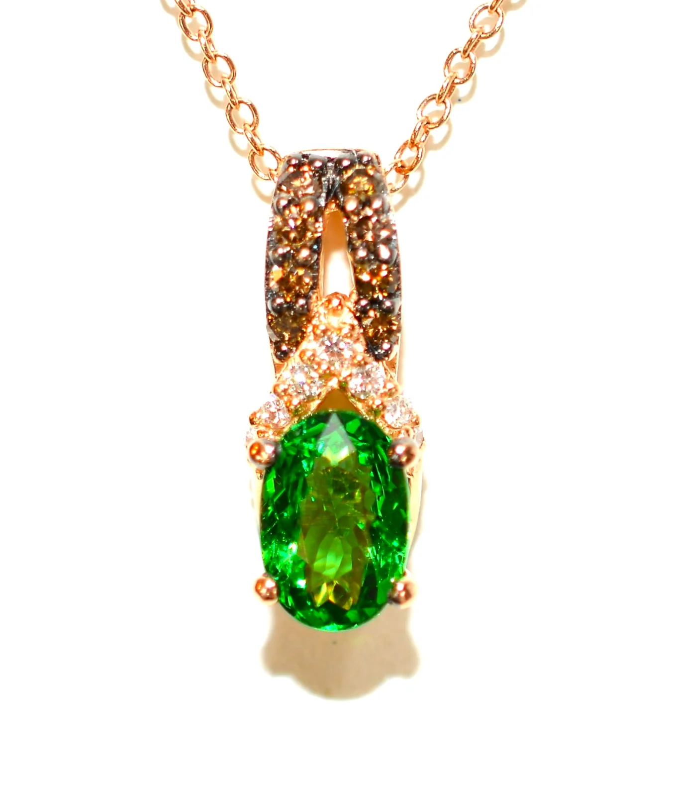 LeVian Natural Tsavorite Garnet & Chocolate Diamond Necklace 14K Solid Rose Gold 1.04tcw Pendant Necklace Designer Necklace Green Necklace