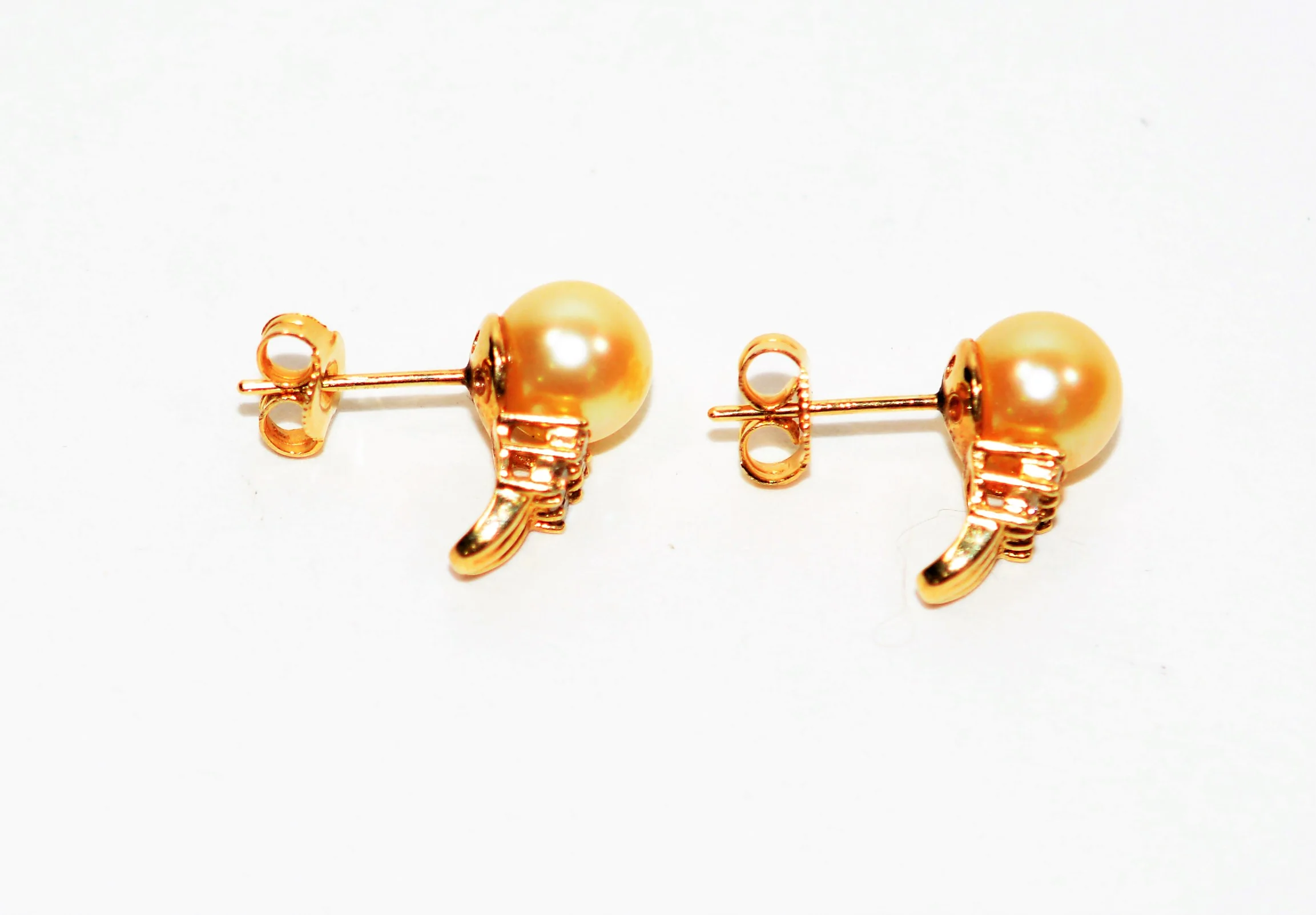 These two, 0.00mm, Natural South Sea Pearl is very well cut and polished with no flaws, chips, or surface scratches. Each has vivid saturation and is a dazzling creamy-white color! Photos are taken under professional lighting and are magnified at 50x zoom to show details that may not be visible to the naked eye. The earrings are clearly hallmarked 14K on the earring posts, as well as on the sturdy butterfly push-back closures. Each earring measures 15mm long by 7.50mm wide by 8mm thick. When worn, the earring drop is 14mm.
